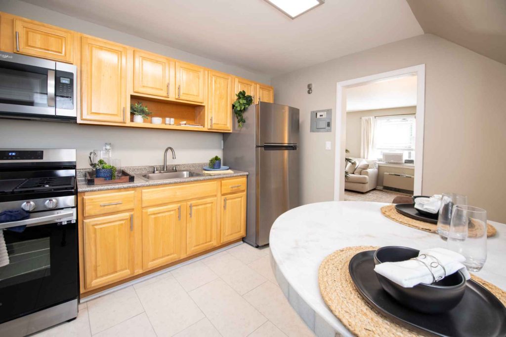 Experience the perfect blend of style and convenience at Mill Run at Union apartments. Our renovated one- and two-bedroom apartments are designed with your lifestyle in mind, featuring sleek cabinetry, updated countertops, and easy-care flooring. Choose from modern black or stainless steel appliances, with select homes offering stackable washers and dryers, built-in microwaves, breakfast bars, ceiling fans, and elegant built-in tubs with ceramic tile surround.